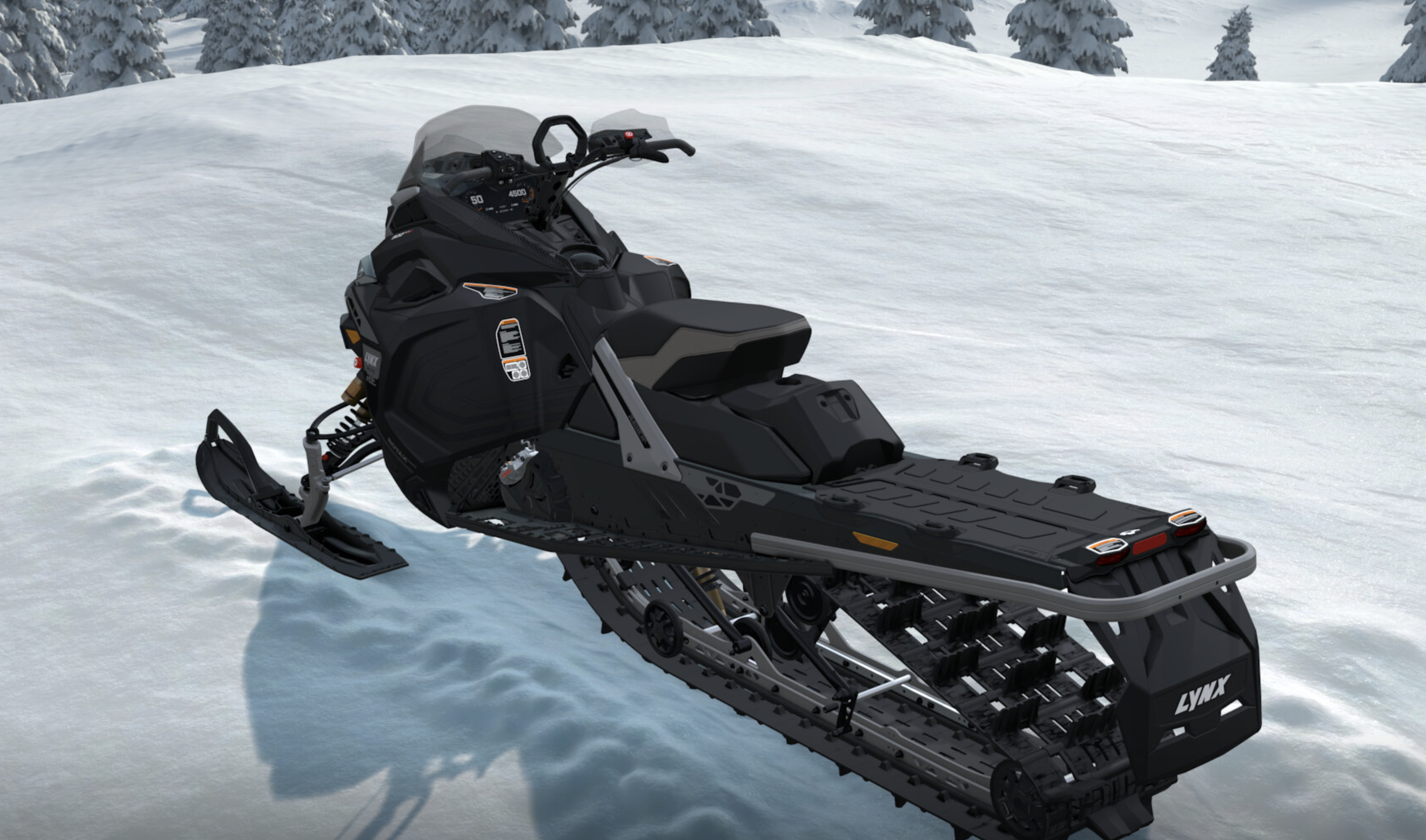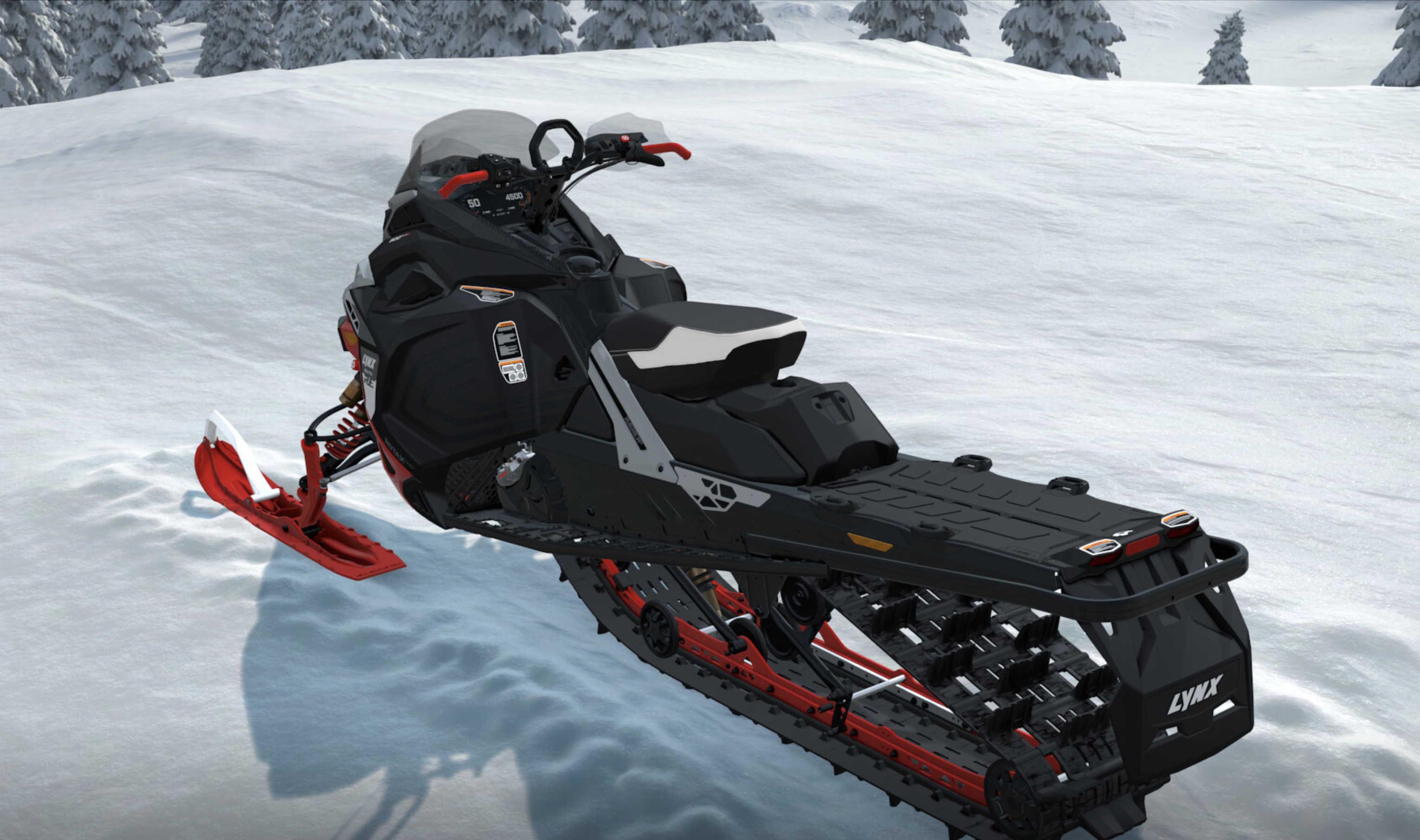 Снегоход оснащён современным трёхцилиндровым турбированным двигателем Rotax 900 ACE Turbo Rобъёмом 899 см³, который развивает до 180 л.с. и обеспечивает мощное ускорение, высокую тягу и стабильную производительность даже при перевозке груза или движении по глубокому снегу.
