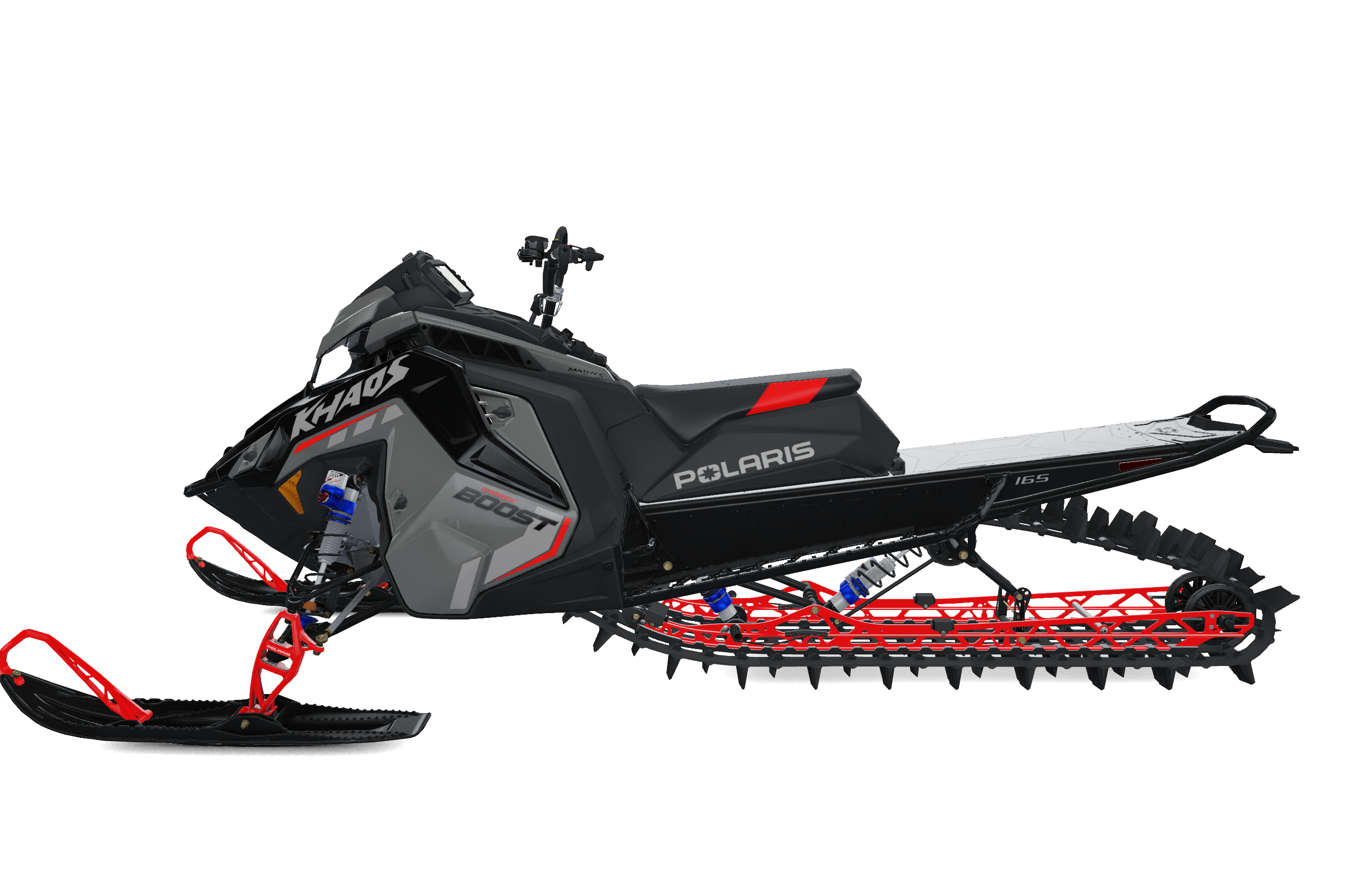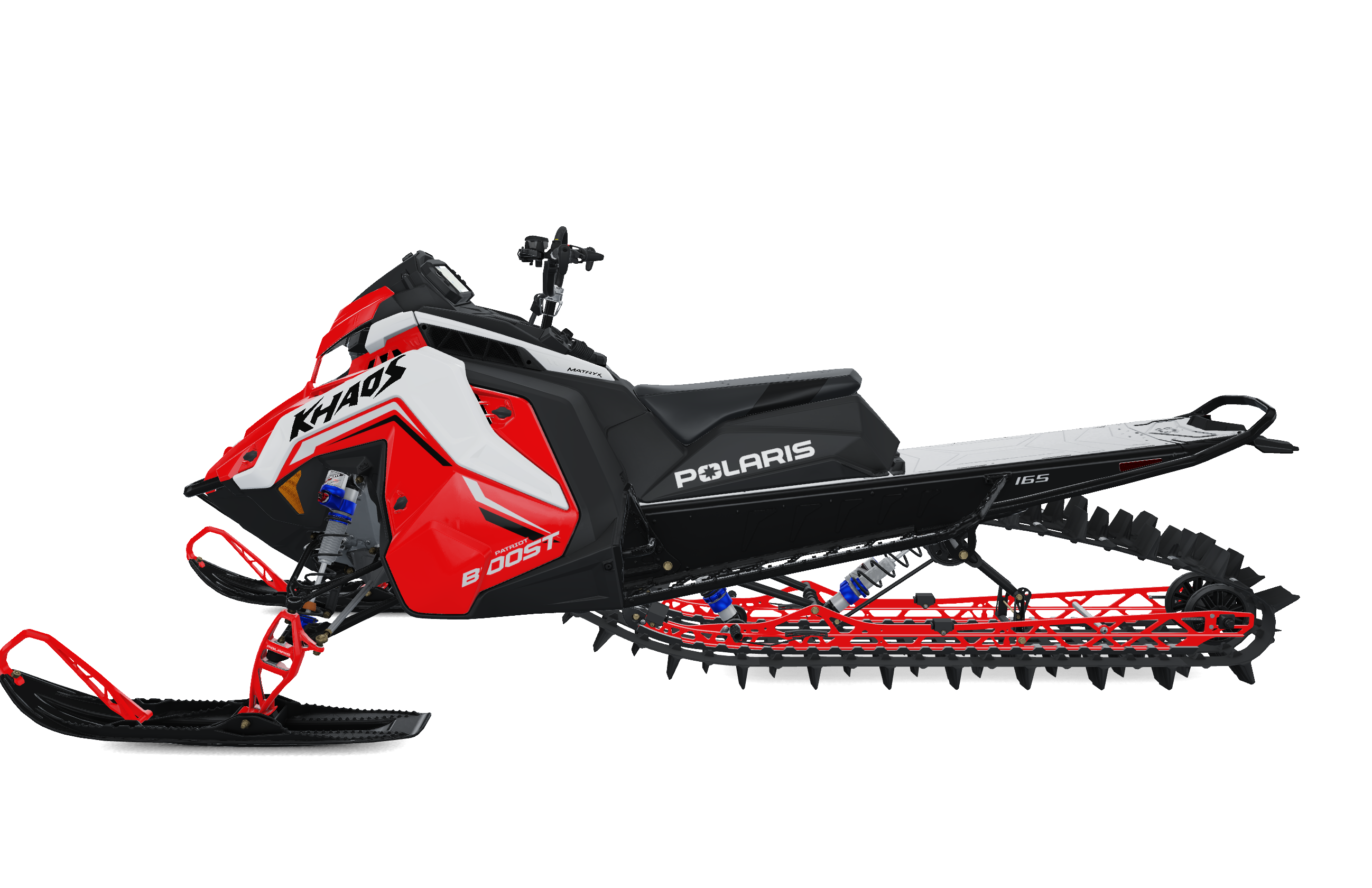 Polaris Patriot Boost RMK Khaos 165 2027 модельного года — это одна из самых драйвовых и “игровых” моделей в линейке Polaris Inc., созданная для райдеров, которые предпочитают агрессивный стиль катания, прыжки, резкие перекладки и полный контроль в глубоком снегу. Версия Khaos сочетает в себе мощность турбо-двигателя и более динамичную геометрию подвески, ориентированную на активный райдинг.
